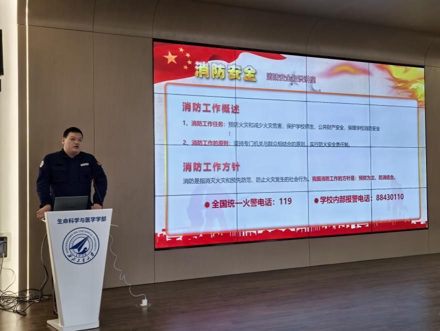 为筑牢校园安全防线,提升师生消防安全意识与应急处置能力,1117日下午14时,伟德国际1946官网特邀学校保卫处消防科许磊老师,在生命科学与医学学部报告厅为学院师生开展消防安全知识与技能专题培训。本次培训通过“理论授课+现场实操”的形式,推动安全知识向实战能力转化。学院近40名师生参与此次培训。